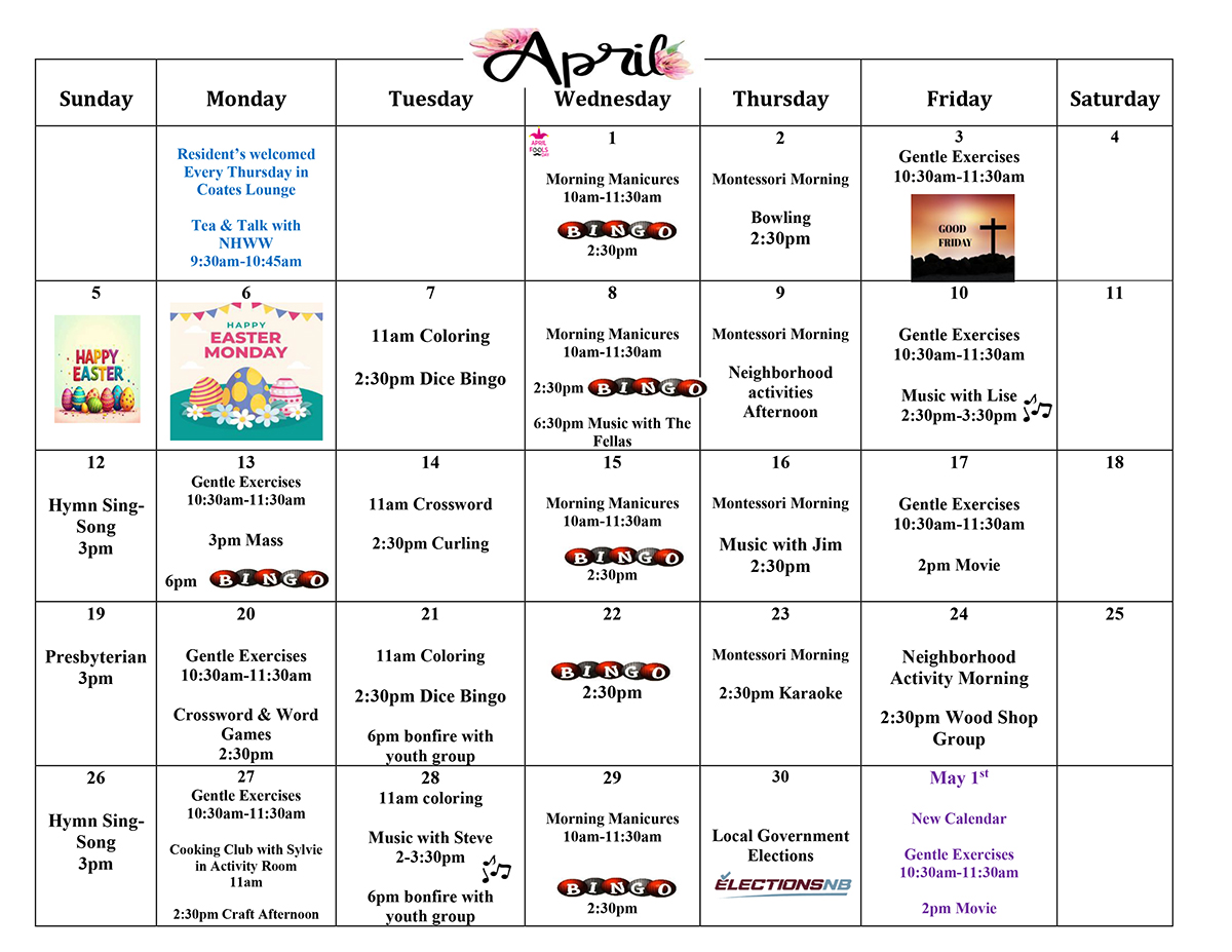 Calendar Find out what’s going on at the Drew! April 2026 (Download PDF) March 2026 (Download PDF) NURSING HOME WITHOUT WALLS CALENDAR