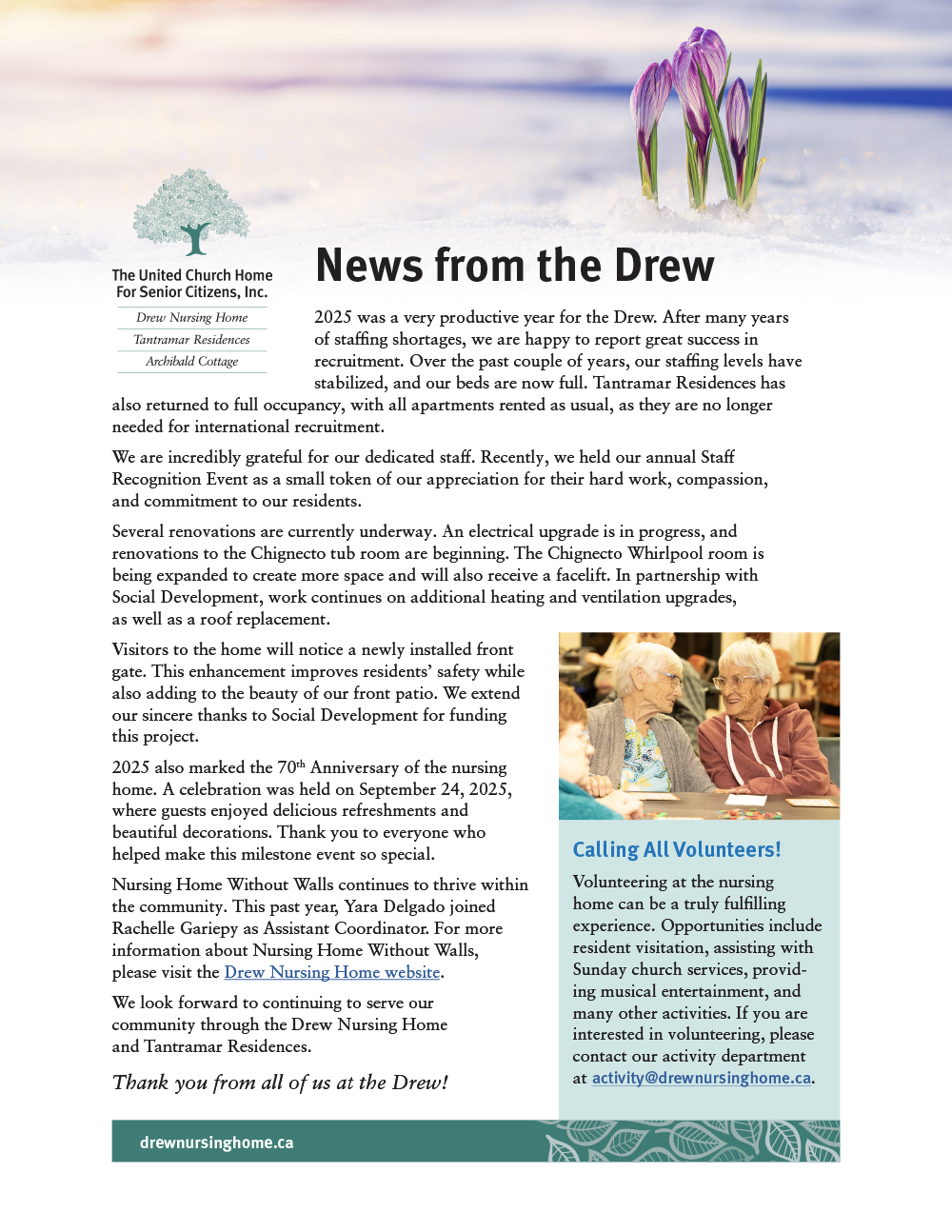 The Drew Nursing Home celebrated its 70th year in 2025. Read about this and other news in the annual newsletter.